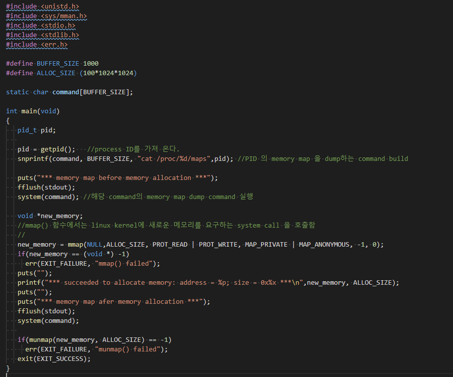 마지막 주소 - 시작 주소로, 할당된 size를 계산 해 보면 정확히 104857600 byte = 100 MB 이다.