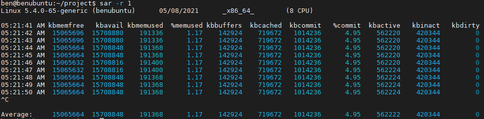 1초 단위로 메모리에 관련된 통계 정보를 얻을 수 있다.