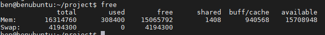 free명령어 사용으로, 시스템의 총 메모리의 양과 , 사용 중인 메모리의 양을 알 수 있다.