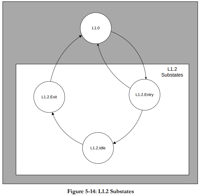 All Link and PHY state must be maintained during L1.2, or must be restored upon exit using implementation-specific meanss and the LTSSM and corresponding Port state upon exit from L1.2 must be indistinguishable from the L1.0 LTSSM and Port state.(모든 링크 및 PHY 상태는 L1.2 동안 유지되어야 하거나 구현별 수단을 사용하여 종료 시 복원되어야 하며 L1.2 종료 시 LTSSM 및 해당 포트 상태는 L1.0 LTSSM 및 포트 상태와 구별할 수 없어야 합니다.)