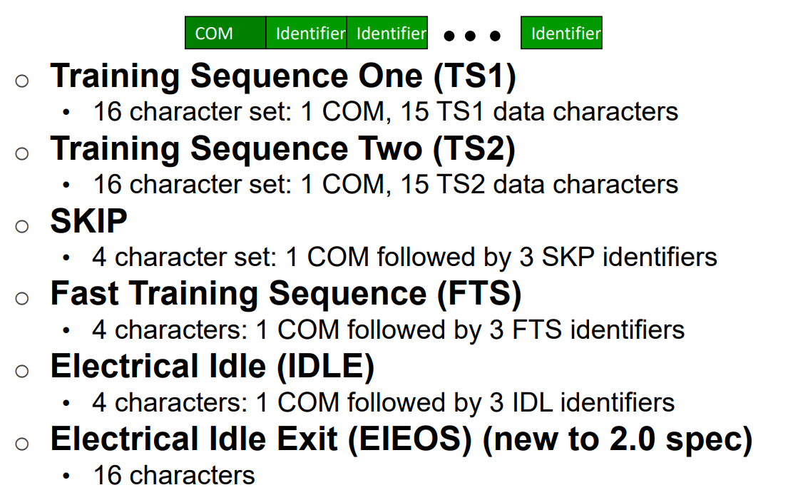 - Ordered-Set은 특별한 유형의 짧은 제어 심볼 시퀀스이며, 데이터 패킷(TLP/DLLP)이 아닌, 링크 제어 및 동기화를 위한 신호입니다.