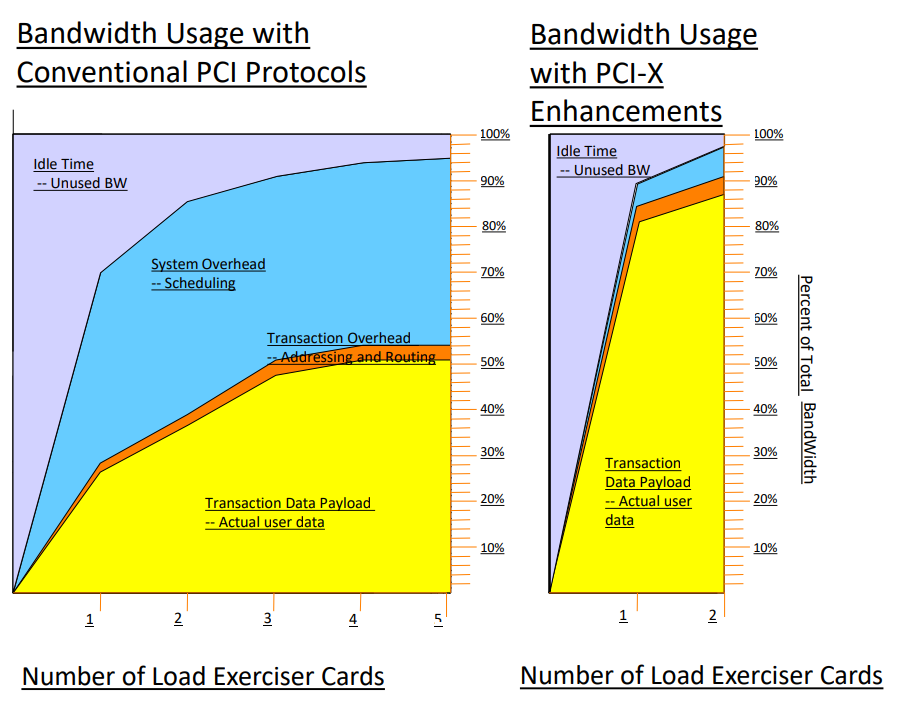 - PCI-X 2.0 (2003) 대역폭이 두 배로 증가