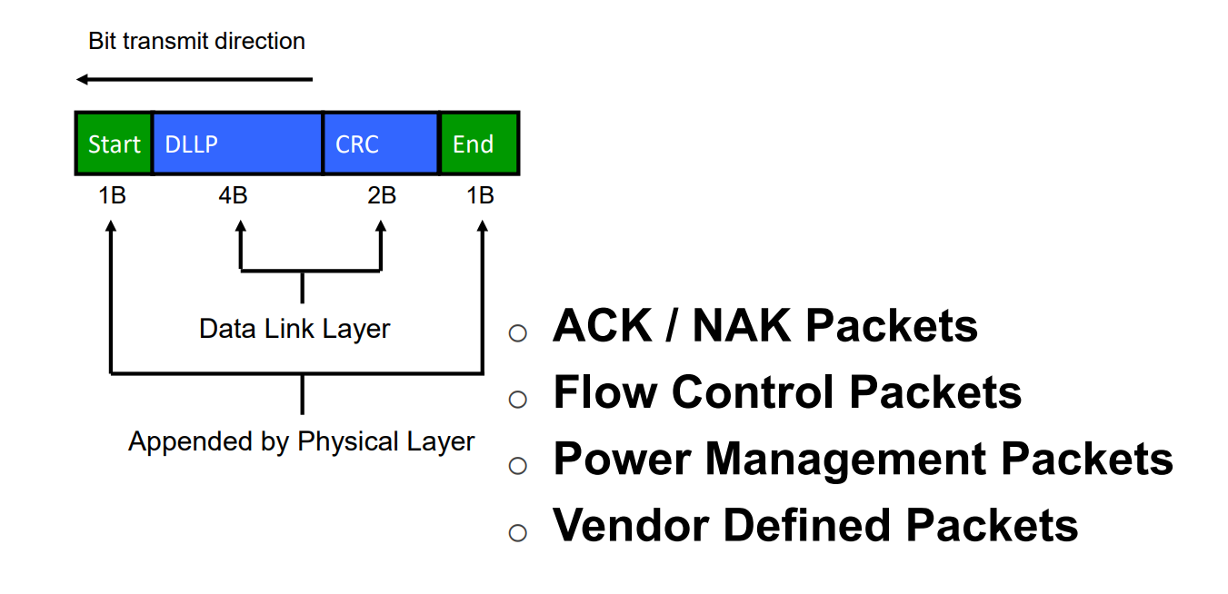 - DLP와 DLLP는 모두 제어 정보를 전송하며, 이는 흐름 제어나 Ack/Nak 등의 정보를 포함합니다. 만약 DLP 또는 DLLP가 손실되거나 오류가 발생하더라도, 그 정보는 차후의 새로운 패킷에서 다시 제공되기 때문에 재전송이 필요하지 않습니다.