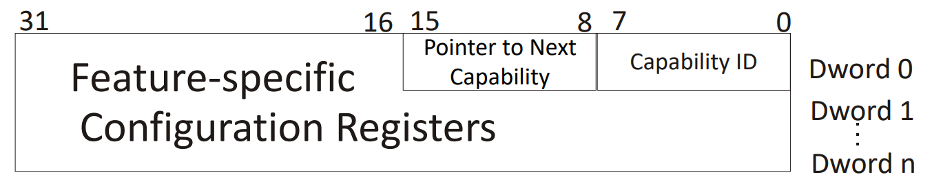- Linked list - PCI Express 에서 새롭게 추가되었지만 Capabilities List와 유사함