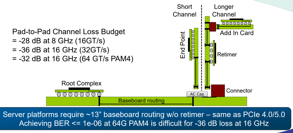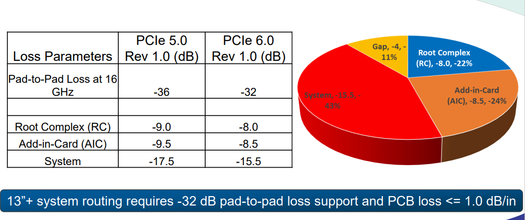 - PCB loss of <= 1 dB/in at 16 GHz : 서버용 패드-패드 간 32dB 손실을 위해 요구됨.