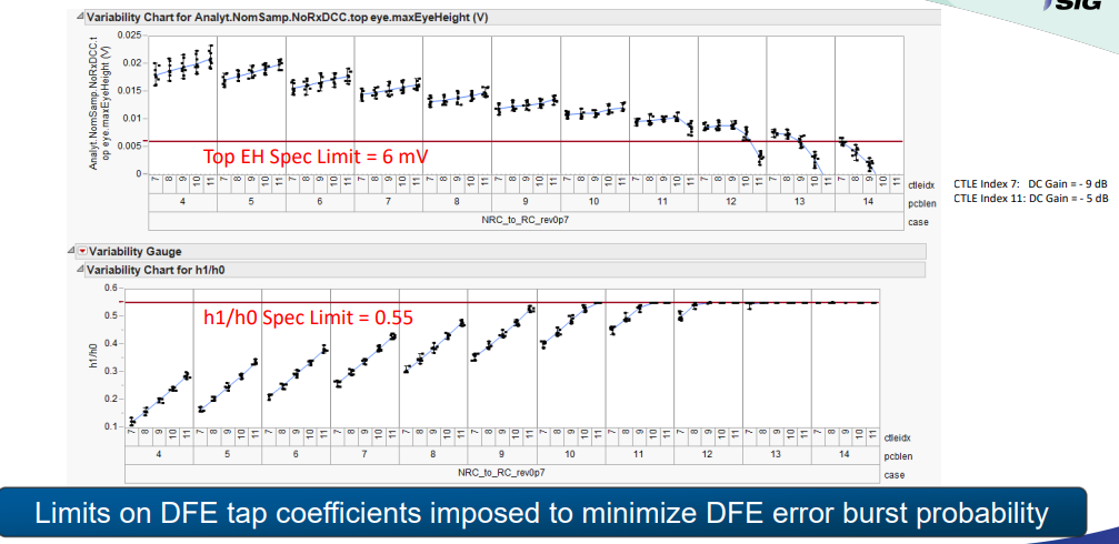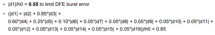 - h1/h0 비율은 0.5 이하로 설정되어 DFE 버스트 오류를 제한합니다.