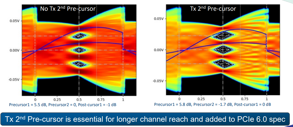 - 이는 3개의 아이 패턴(eyes)을 형성하며, 32.0 GT/s와 동일한 나이퀴스트 대역폭을 유지하면서 채널 손실을 완화하는 데 도움을 줍니다.