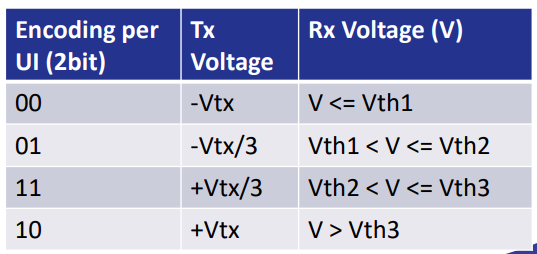 - 하나의 UI(단위 간격)에서 4가지 레벨(2비트)을 사용하여 데이터를 전송합니다.