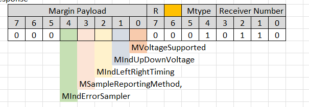 | Margin Command | Margin Type [2:0] | Valid Receiver Number(s) [2:0] | Margin Payload [7:0] | Response Margin Type [2:0] | Response Margin Payload [7:0] |