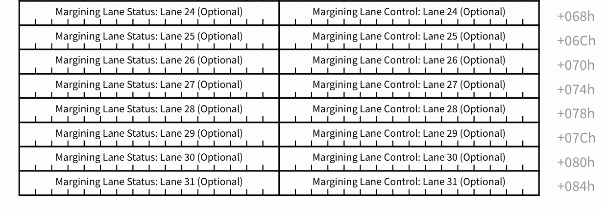 Offset 08h 부터는 Lane 0 에 대한 Margining Lane Control Register(16bits) 가 존재하며,