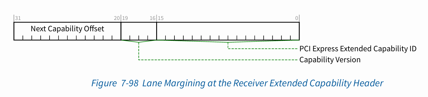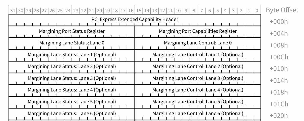 각 PCIe 포튼느 자신의 Configuration Space 에 한개씩 Margining Extended Capability 레지스터를 가지고 있습니다.