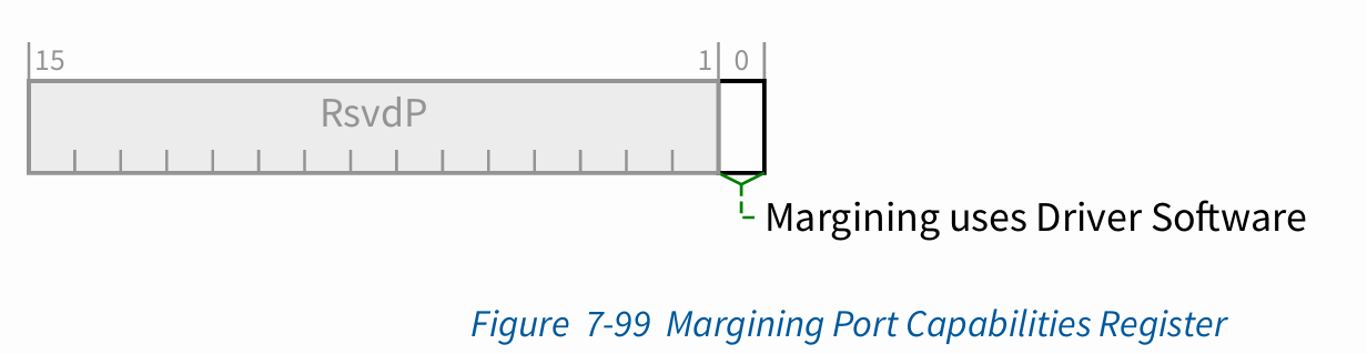 Offset 04h 에는 Margining Port Capabilities Register (16bits) 가 한개 존재하며, 아래와 같이 한 가지의 내용만 담고 있습니다.